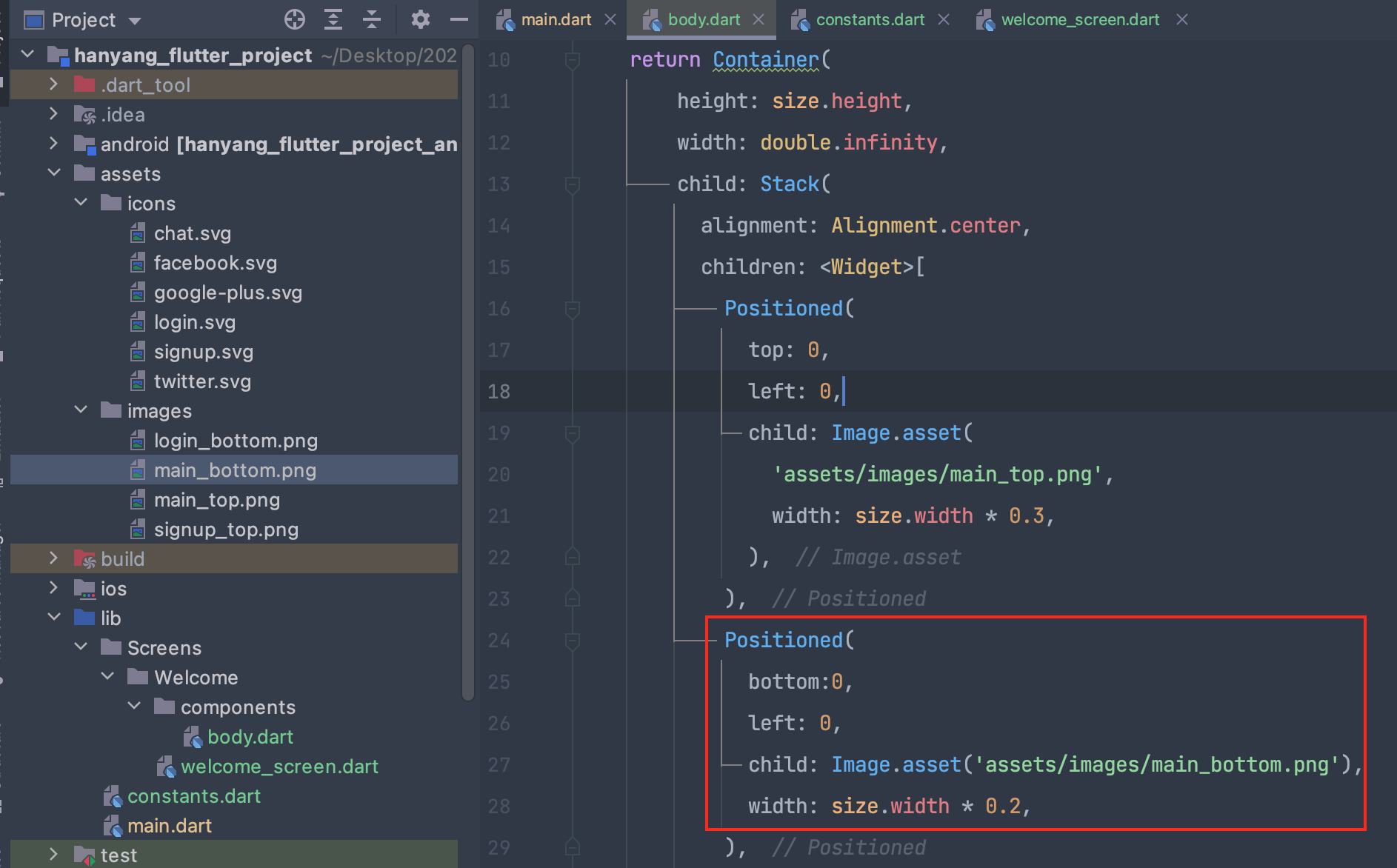 이를 welcome_sceen.dart에 body: Body()를 추가해준다.