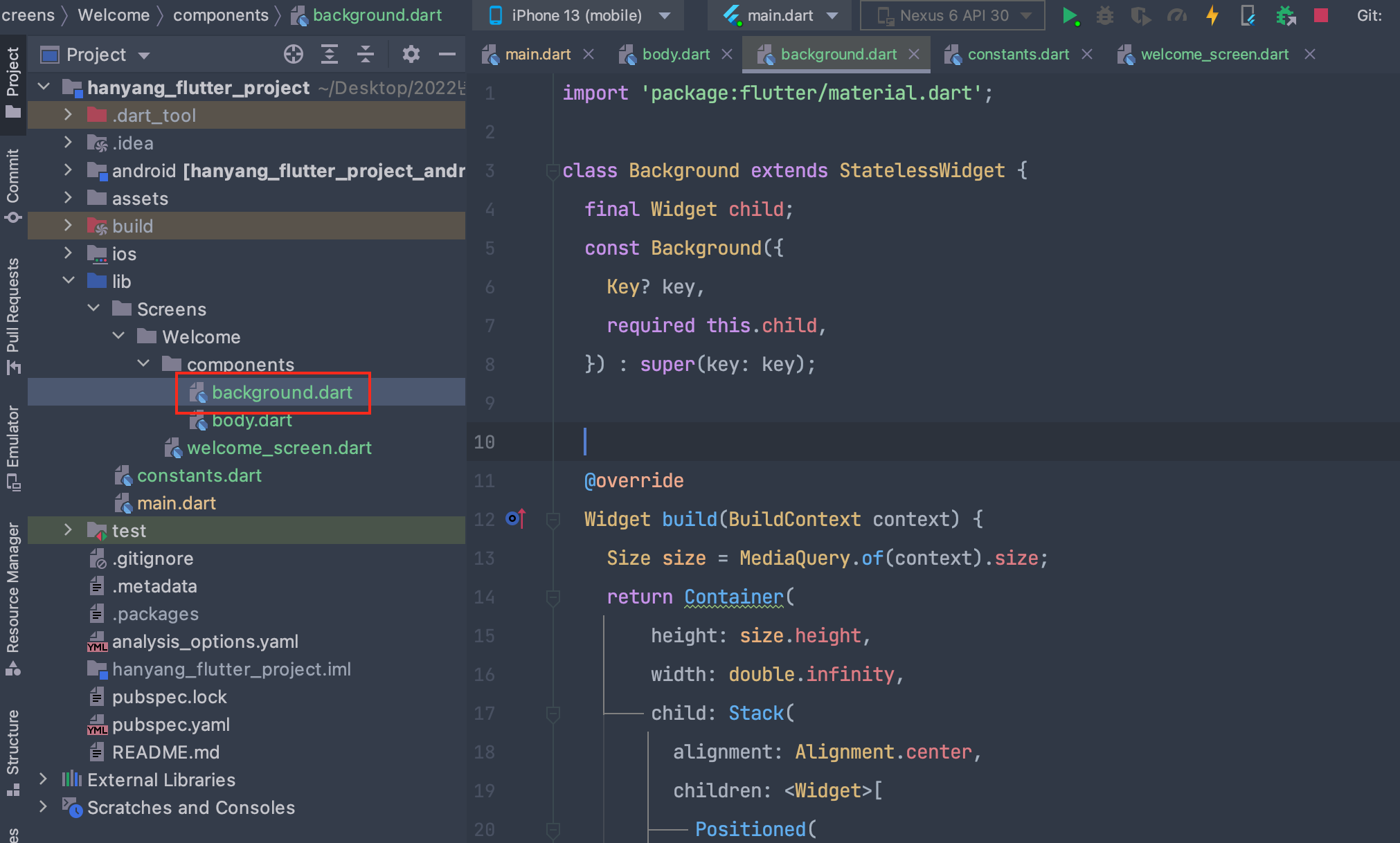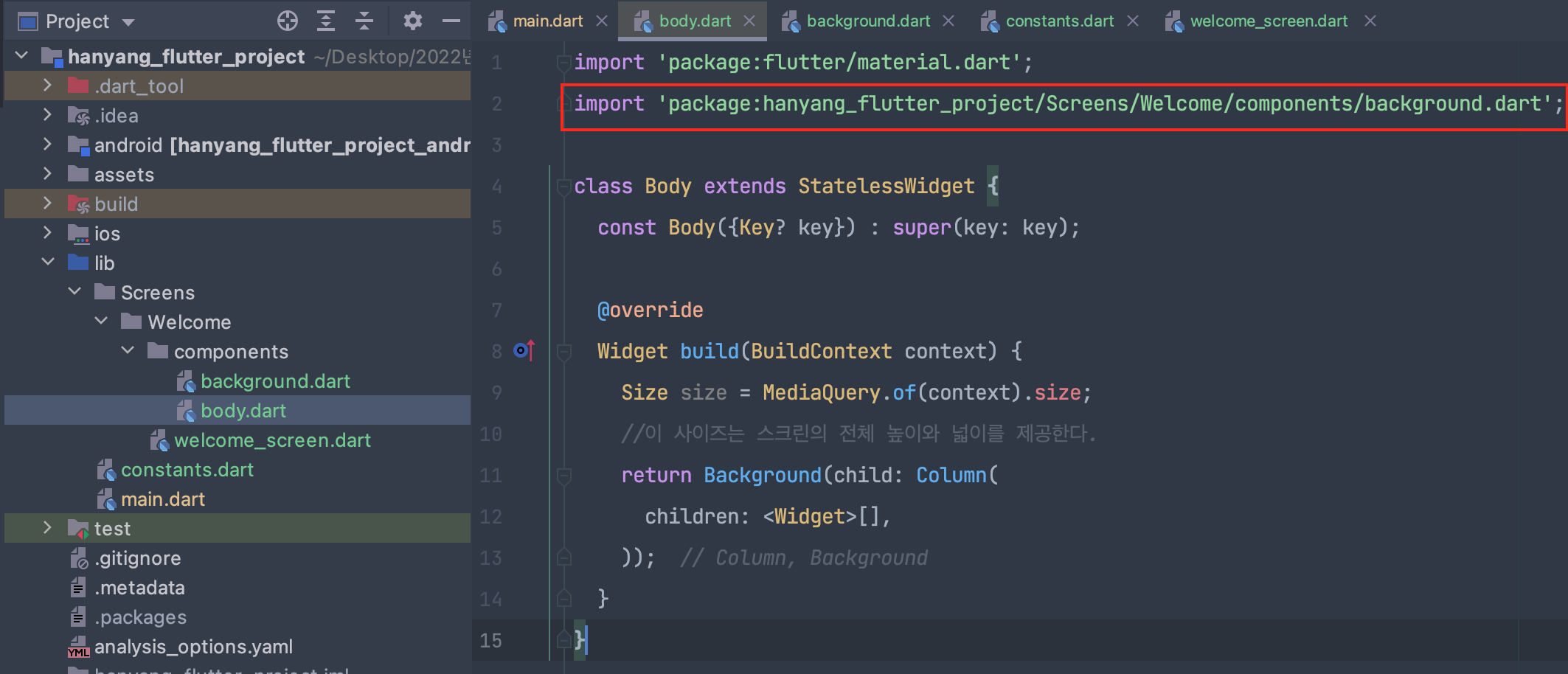 body.dart에서 Class Background 이하를 background.dart로 새로운 파일안에 복사 붙여넣기 한다.