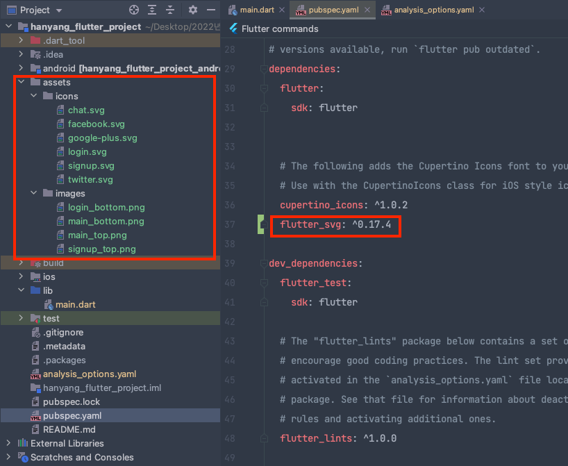 svg를 사용하기 위해서 pubspec.yaml 파일에서 flutter_svg: ^0.17.4 추가했다.