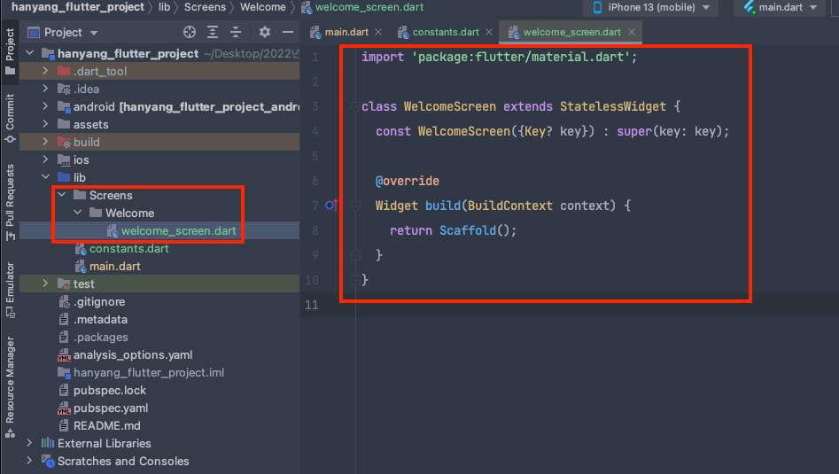 home: WelcomeScreen()으로 아까 stateless 위젯 만들어주었던 것을 불러와준다.