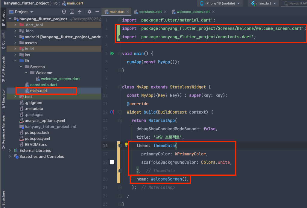 import 할 때 주의 점이 import 'package: 프로젝트이름/폴더명~/ 파일' 이런식으로 지정해주어야 한다는 것이다.
