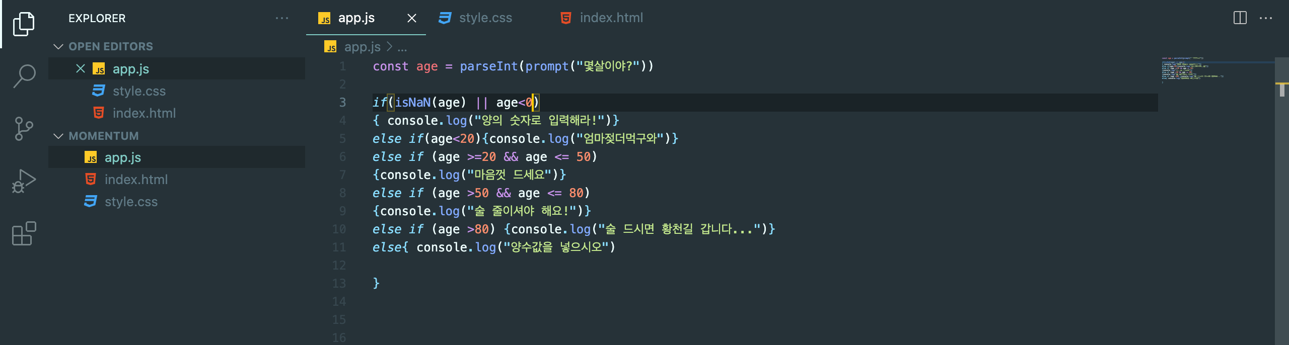 3. else if -> 조건이 거짓일 때 한가지 조건을 더 사용 할 수있게 해준다.