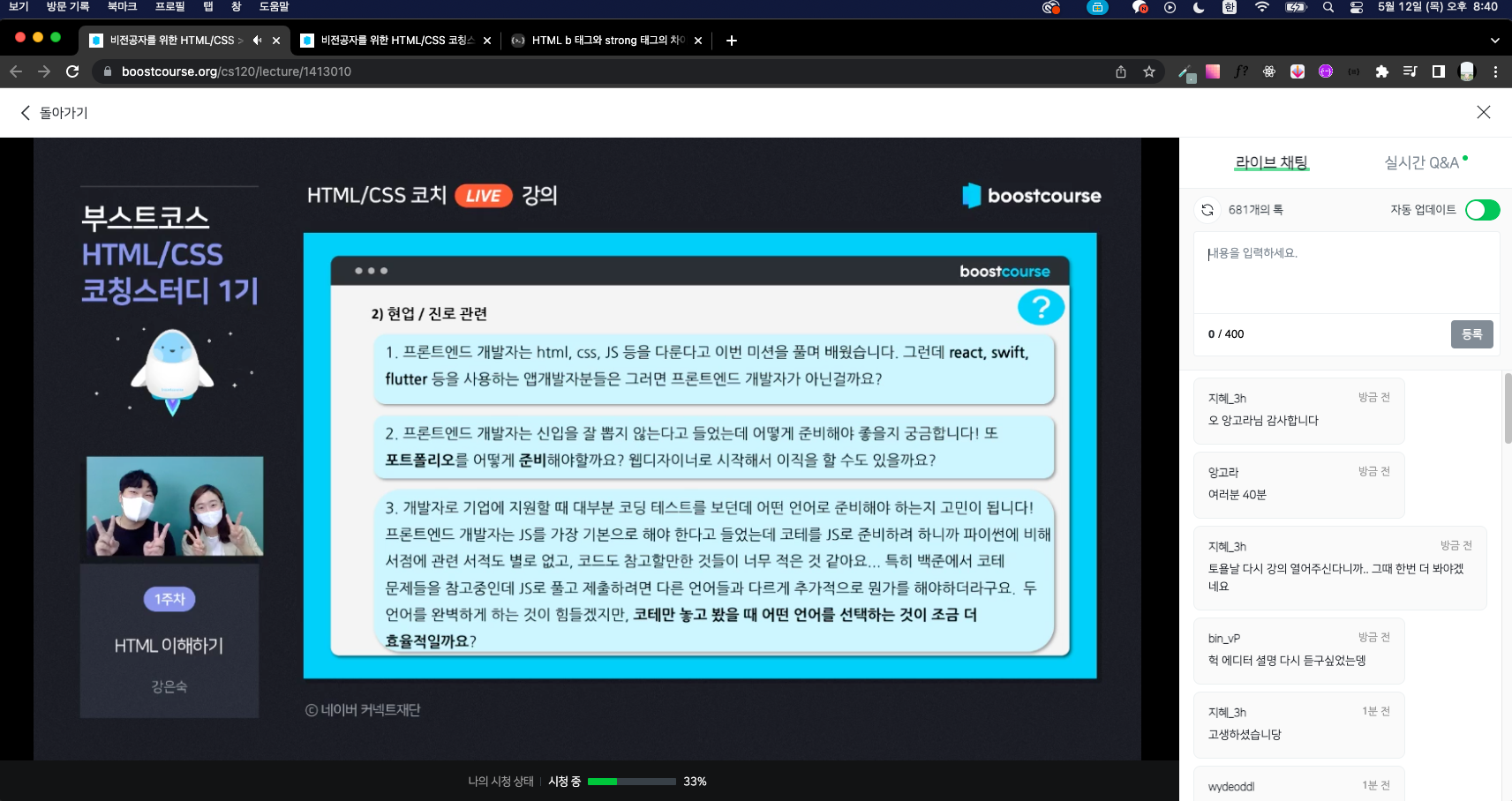| 강의) 01. HTML 이해하기 (0) | 2022.05.08 |