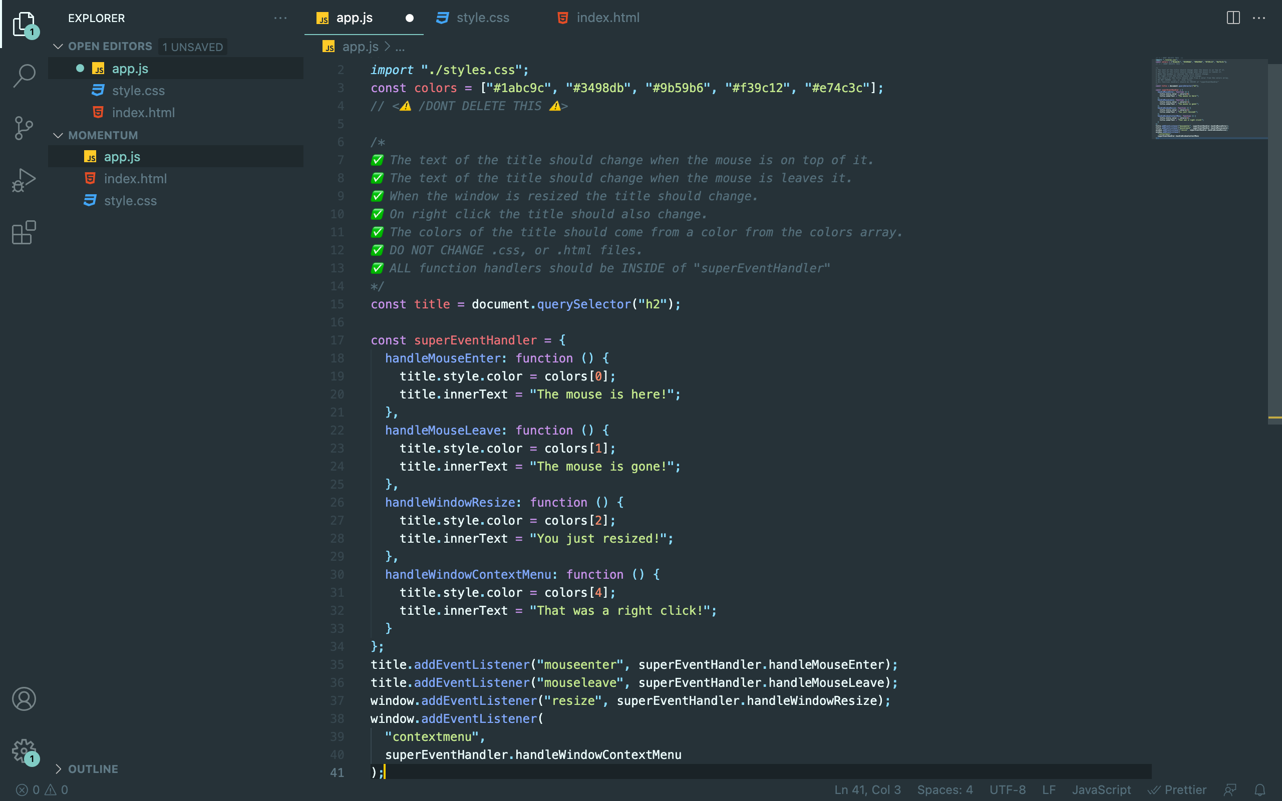 2. classList.contains(string) : 우리가 명시한 class가 html element의 class에 포함되어 있는지 말해준다