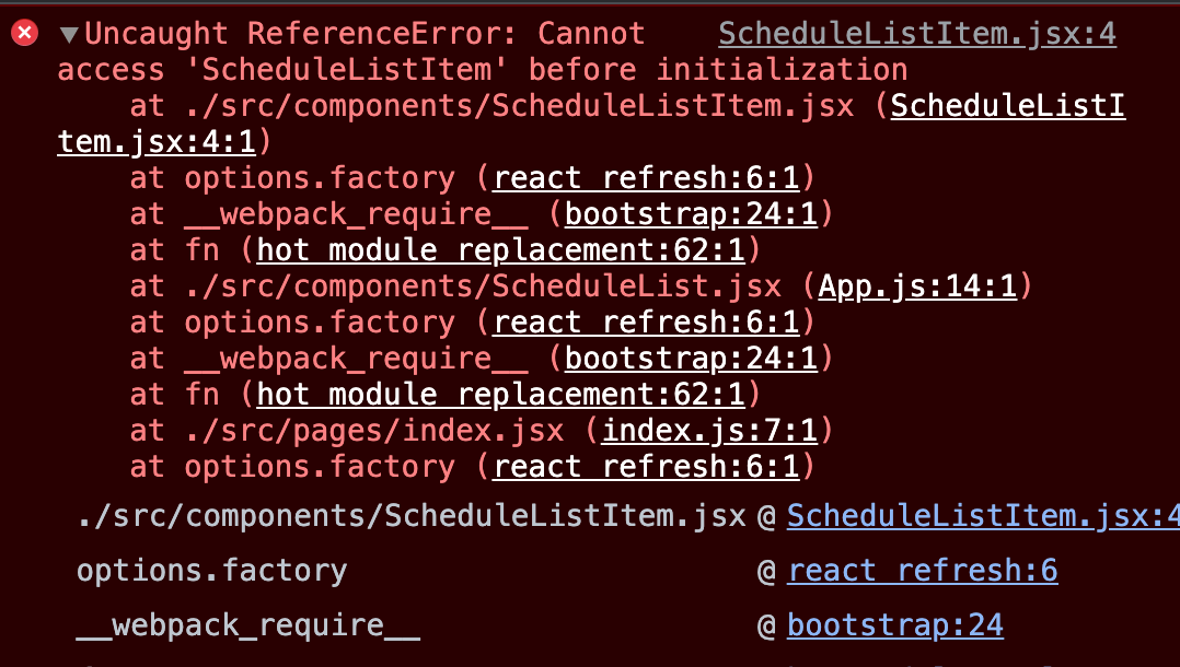 Uncaught ReferenceError: Cannot access 'ScheduleListItem' before initialization