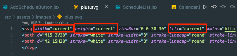 1. 자신이 사용할 svg파일 안으로 들어가서 자신이 변경하고 싶은 값을 'current'로 바꾸어준다.