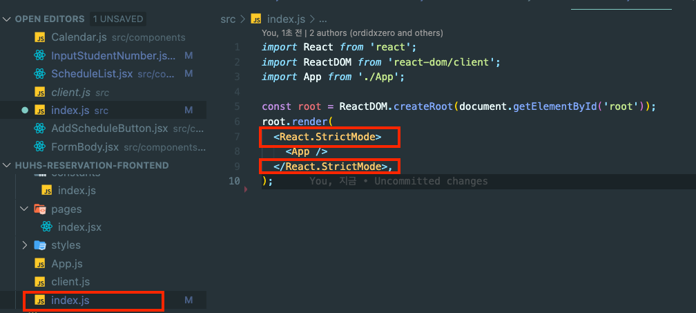 index.js 파일안에 있는 <React.StrictMode>가 감싸져있어서 그렇다.