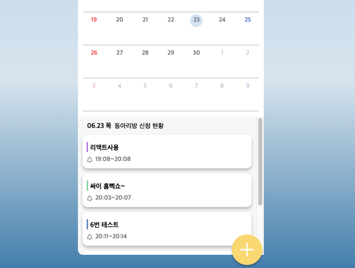 동아리방 신청 현황을 보여줄 때 시간이 빠른 순서대로 보여주어야 하는데, 게시물이 작성된 순서대로 보여진다는 문제점이 있었다.
