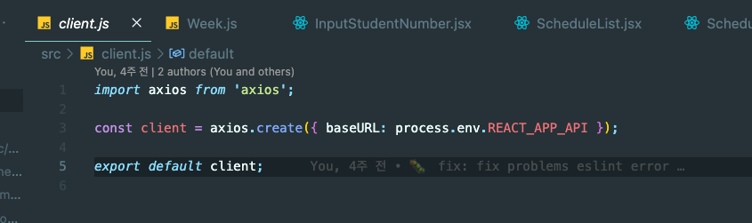 이렇게 정의를 해주면, client라는 이름만 가지고 편하게 axios를 사용할 수 있다.