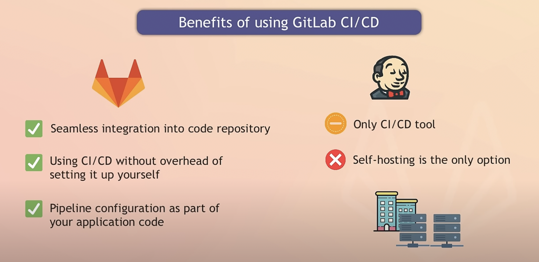 GitLab 장점: 이미 소스코드들이 깃랩에 있으면, 다른 툴을 별도로 사용할 필요없이 깃랩을 사용하면 된다.