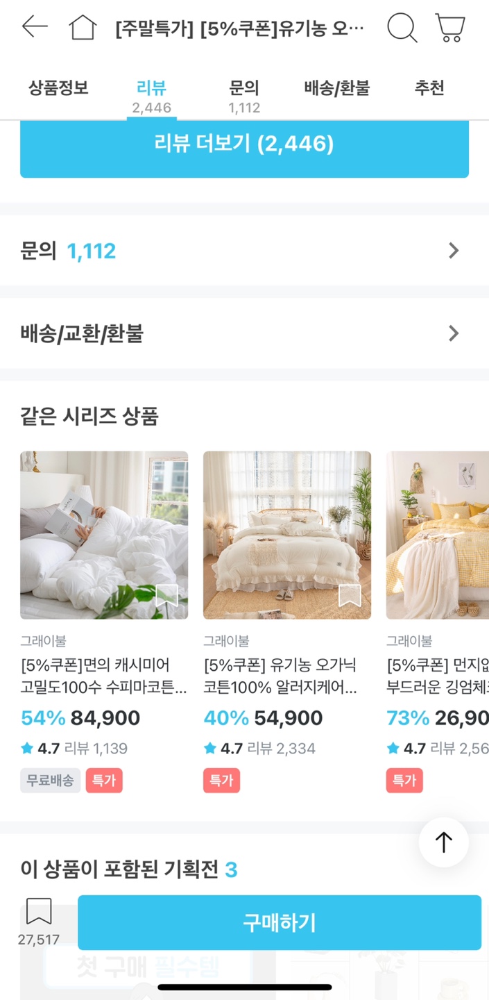 오늘의집 어플 또한 같은 시리즈의 상품을 보여주면서 유저로 하여금 다른 추천 상품을 볼 수 있도록 유도하고 있다.