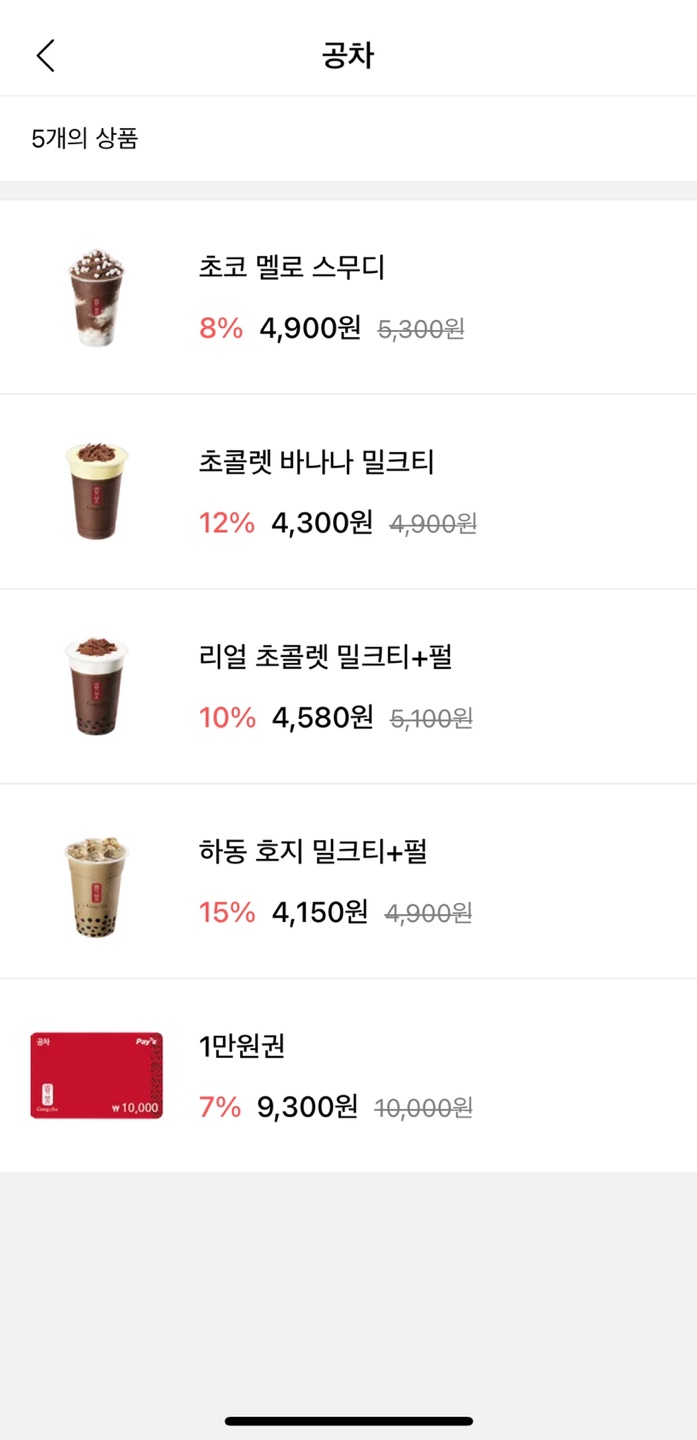 아래의 이미지는 니콘내콘 어플의 상품 목록 페이지 화면이다.