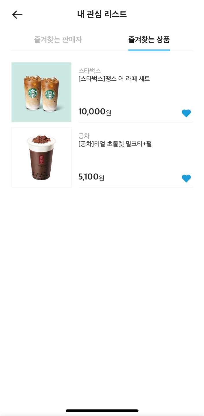 그리고 이는 '나의 메뉴' 탭에서 -> 내 관심 리스트 -> 즐겨찾는 상품 탭에서 내가 즐겨찾기한 상품을 모아서 볼 수 있다.