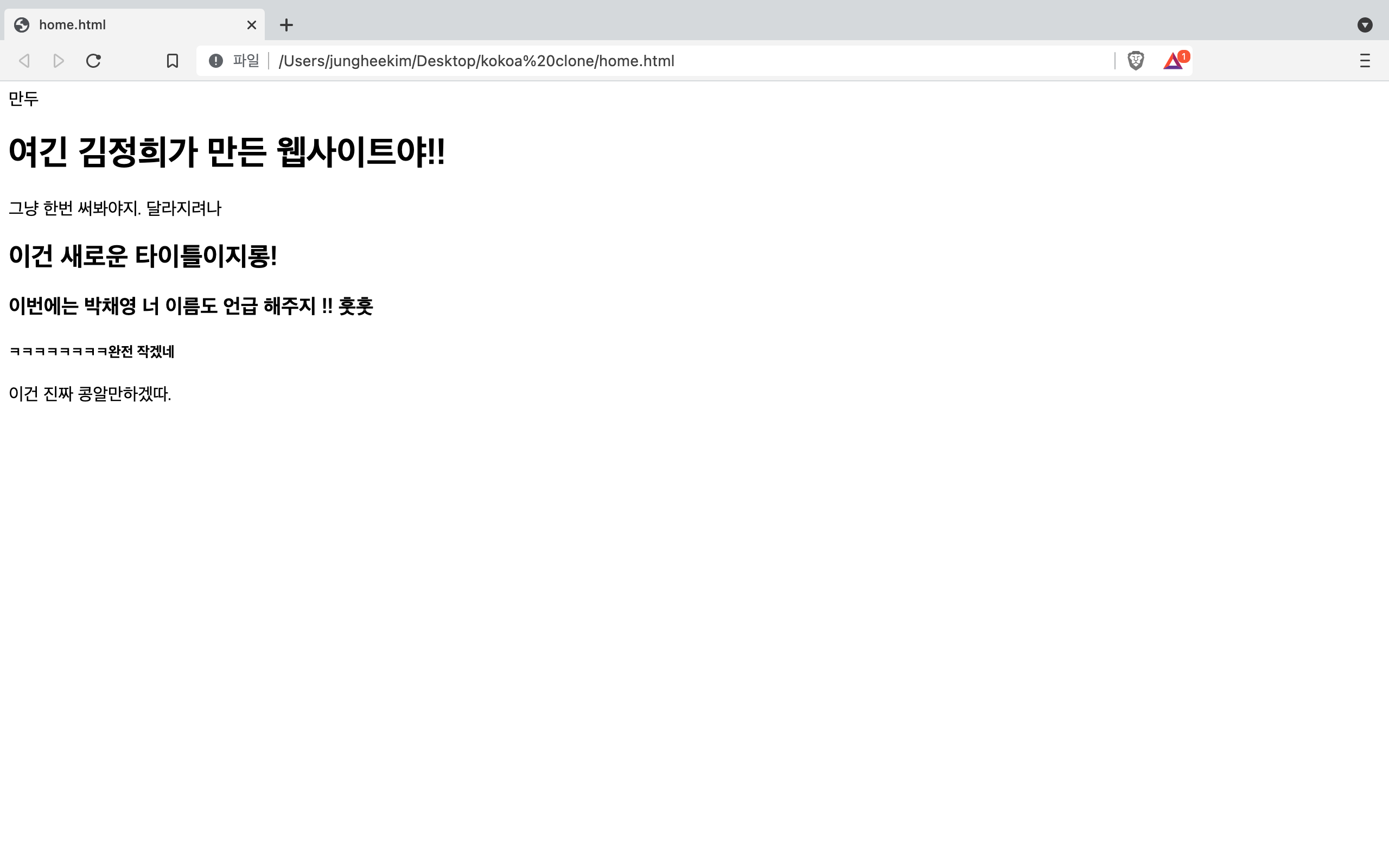 조금 충격이었다. 나는 무슨 사이트를 만드는 툴이나, 그런게 있을 줄 알았는데, 진짜 문자의 배열이였다. 그리고 이 문자의 배열들이 웹 사이트를 만든다는게 너무 신기했다. 그냥 코드일뿐인데 프린트하면 외계어이지만 브라우저에 적용하면 이것이 사이트가 된다니!