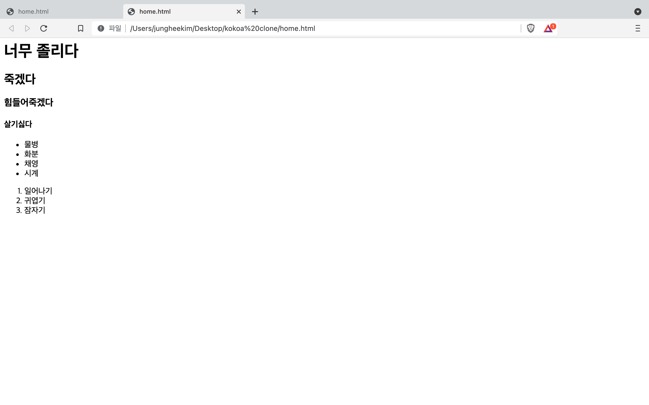 3)<h1> 내용 </h1> -> 이거 꼭 /로 닫아주어야 된다 (안닫아주면 모든게 다 타이틀로 변해버린다)