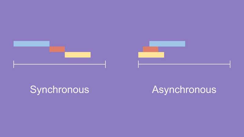동기: 요청이 끝날 때까지 기다리는 동안 중지 상태가 되기 때문에 다른 작업 불가능.