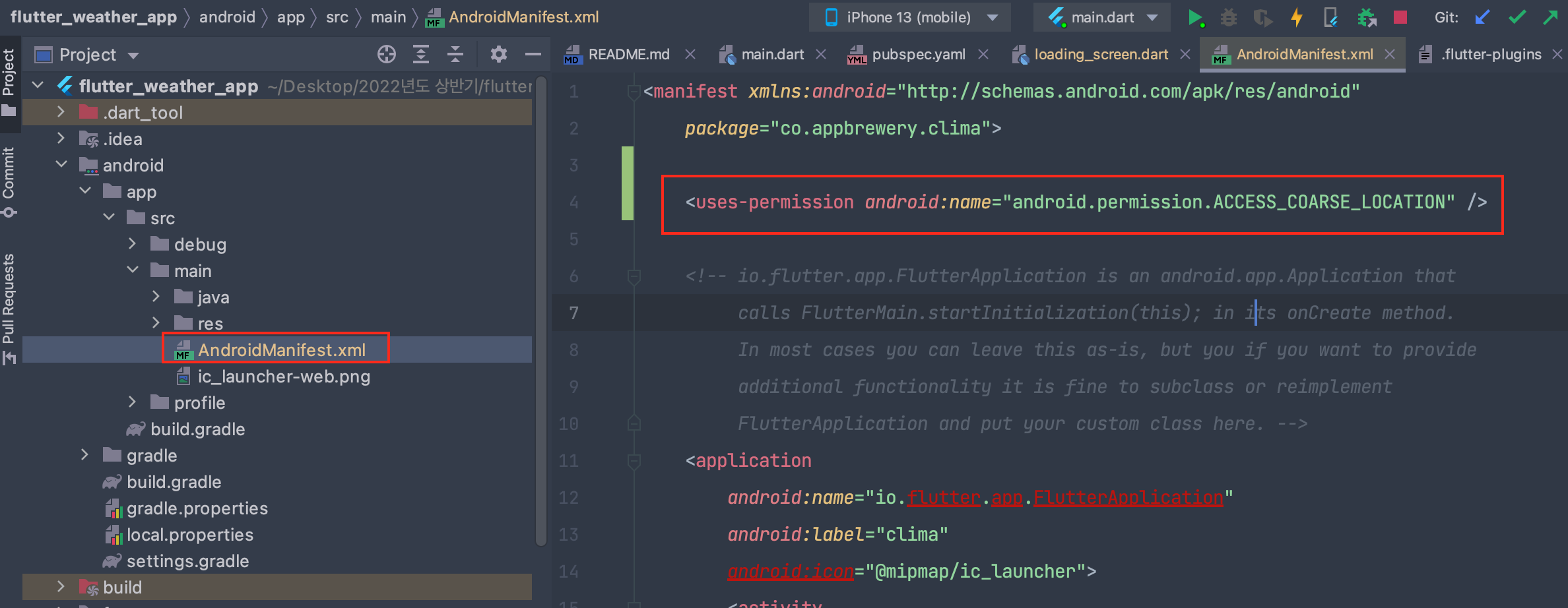 permission 구하는데 제대로 동작을 안해서 다음과 같이 코드를 추가했다.