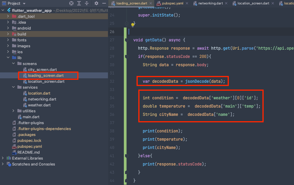 우선 jsonDecode(data) 부분이 계속 중복되기에 deocdedData라는 변수로 하나 만들어서 담아주었다.