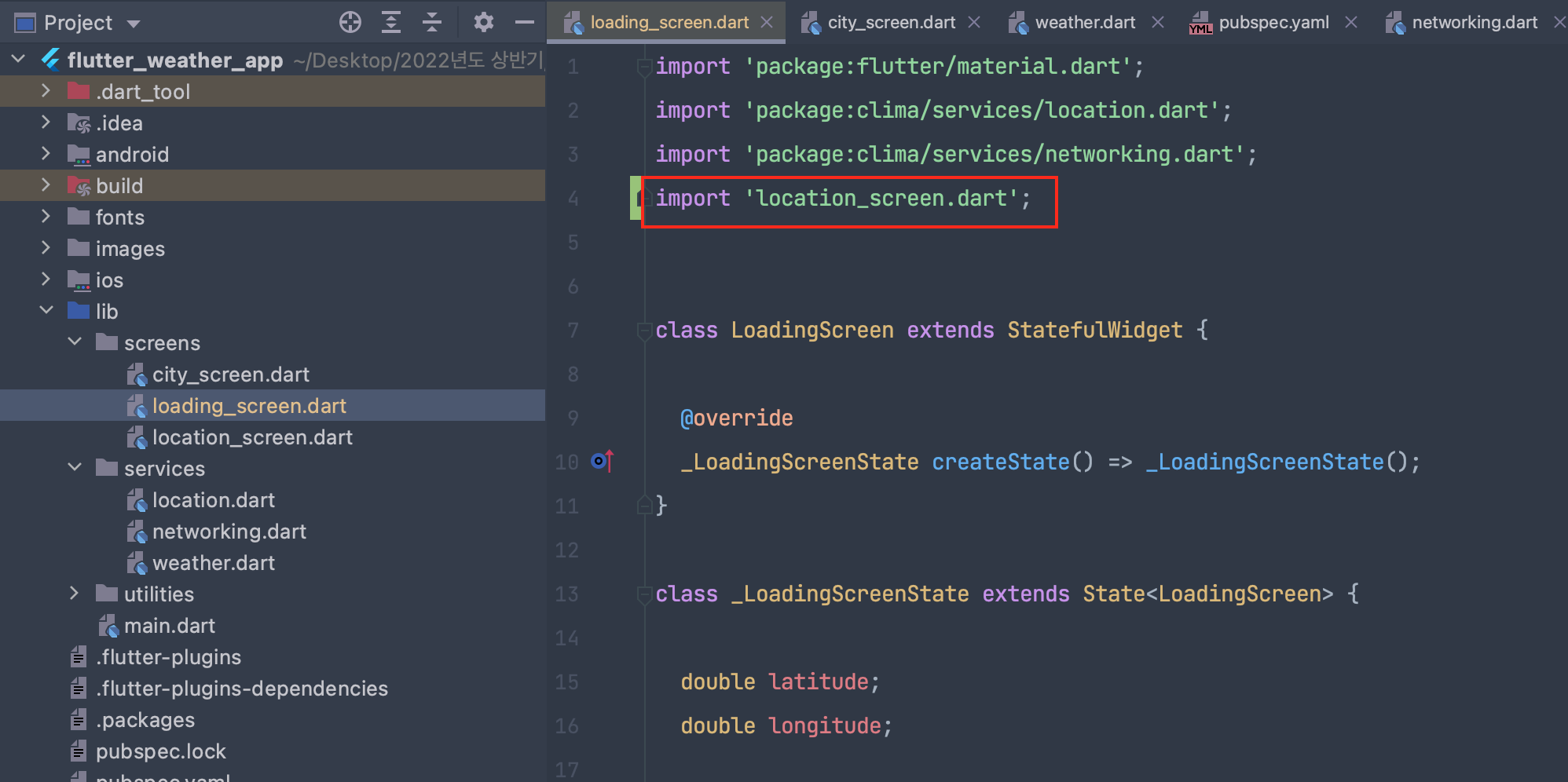 그리고 loading_screen.dart 파일안에 다음 아래 코드를 넣어준다.